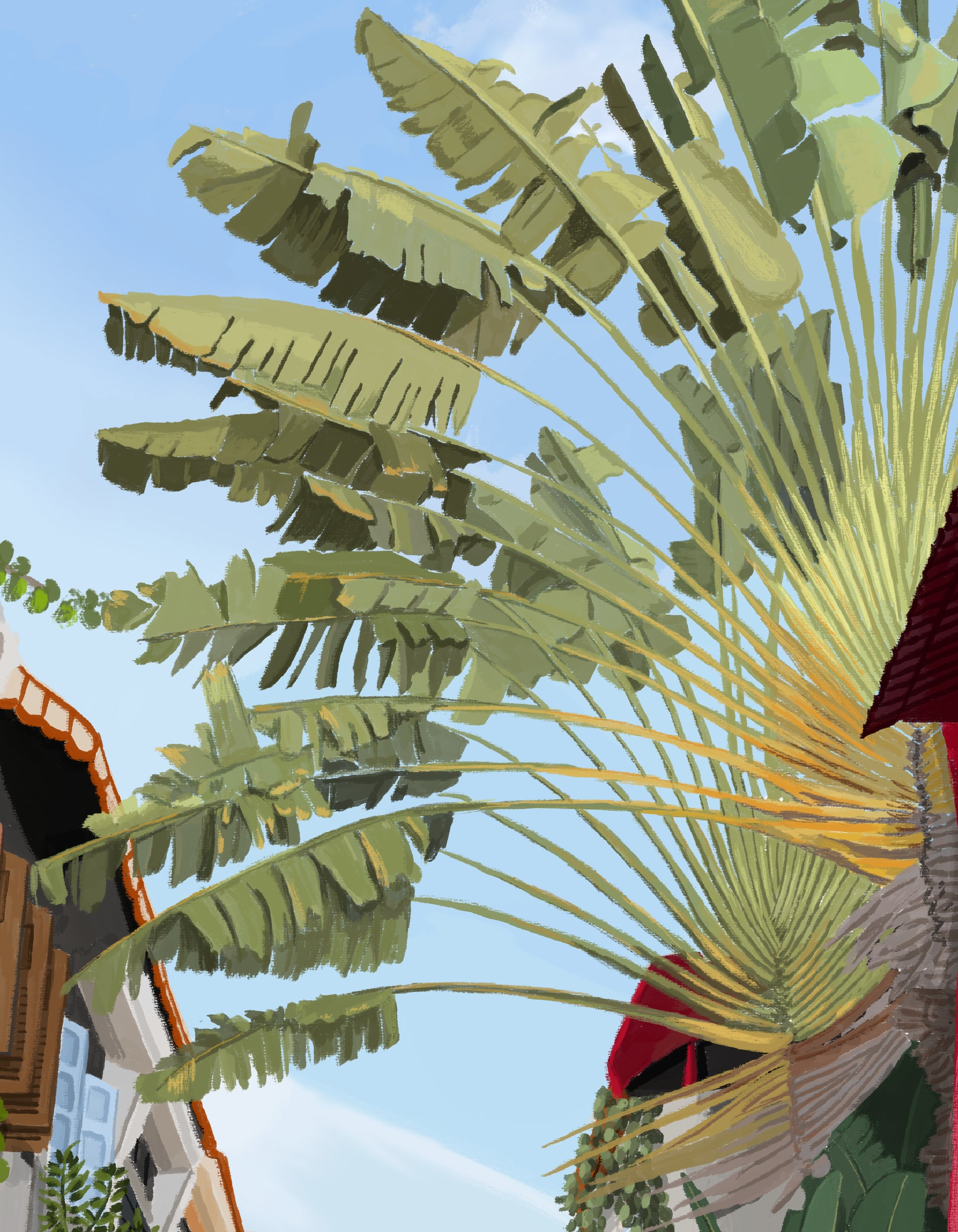 I couldn’t take my eyes off the majestic palms framing the old town street — tropical greenery weaving and spilling out of the heritage shophouses. Like a quiet battle between the past and the evergreen — nature gently reclaiming its space among centuries-old architecture.
